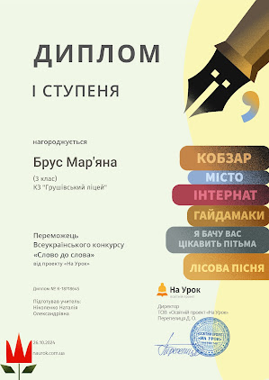 Підведені підсумки XXV Всеукраїнської інтернет-олімпіади «На Урок» (Весна 2025). Учні взяли участь в олімпіаді з української мови, математики, ЯДС та предметів початкової школи. Раді привітати з високими досягненнями Кудлая Станіслава, Полуду Єву, Петренка Артема та учасника Рижика Ярослава. Бажаємо учням і надалі зростати інтелектуально та творчо, постійно прагнути до нових успіхів, досягати поставлених цілей і не втрачати інтересу до всього нового й незвіданого.